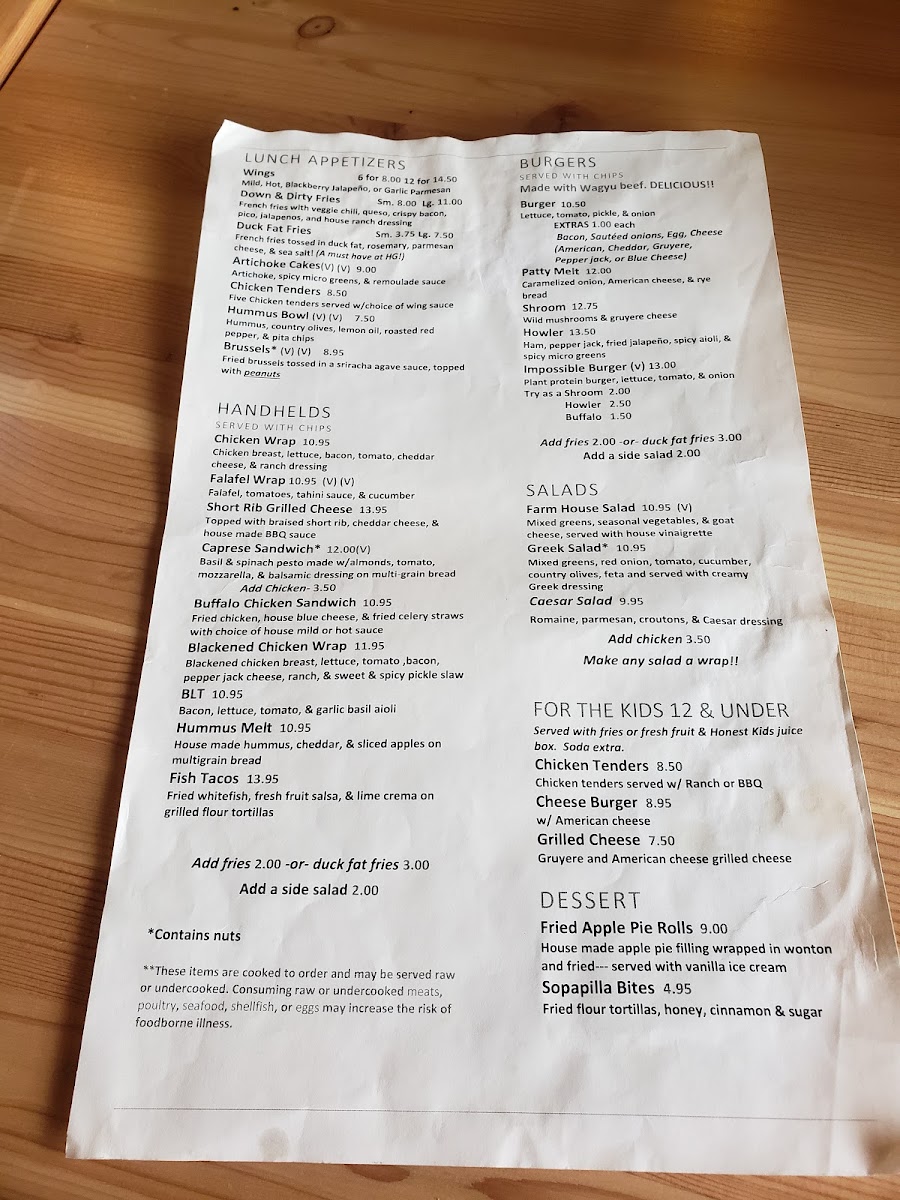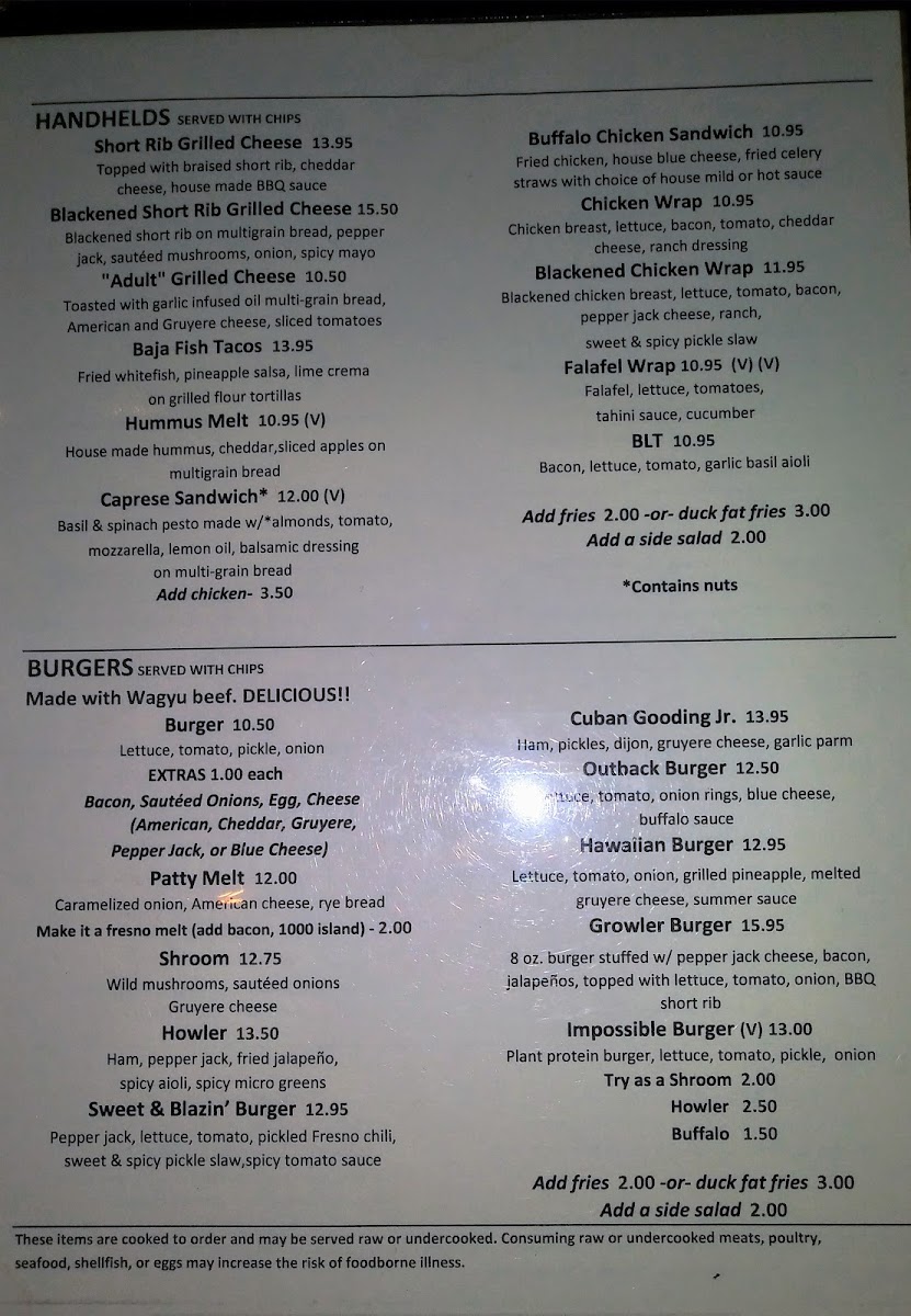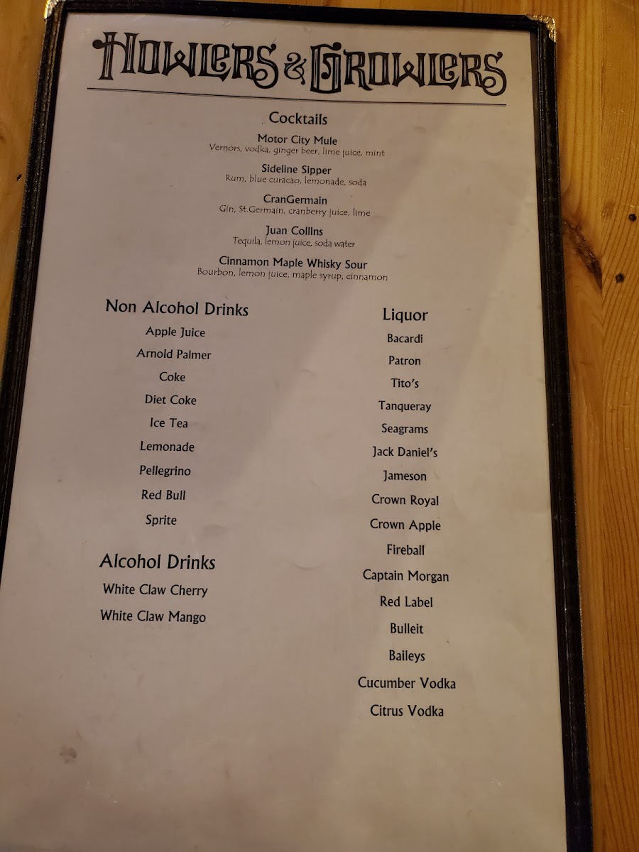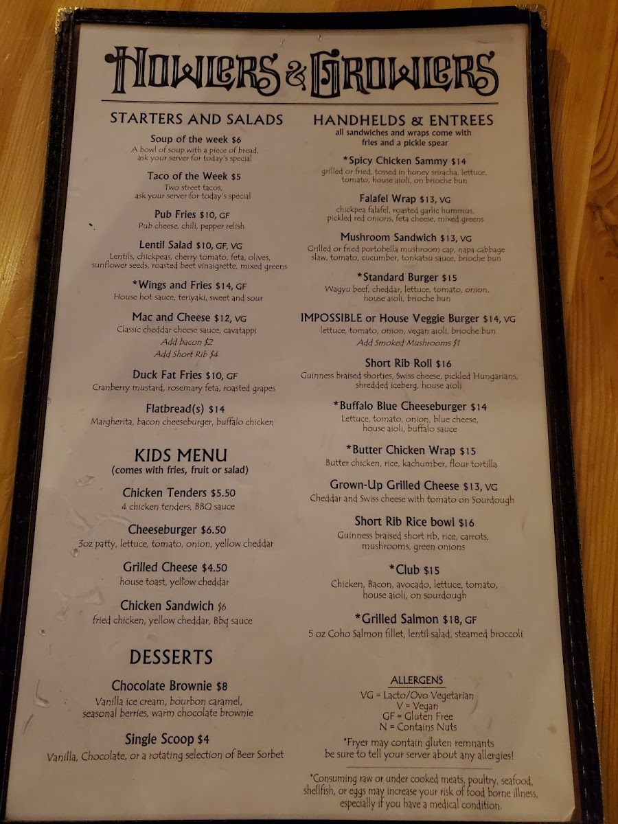 Howlers And Growlers Menu